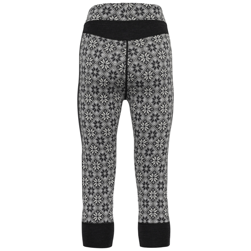 The Rose Capri High Waist is a merino wool base layer that ends below the knee, an ideal match with ski and other boots when you need minimal layers for a smooth, uncluttered fit. Featuring the iconic KT Nordic design, inspired by the traditional Norweigan tapestry hanging in Kari Traa's family cabin, a Jacquard knit elastic waistband, and stretch fabric mapping for improved fit and movement, this slim fit legging is wonderfully warm and buttery soft.