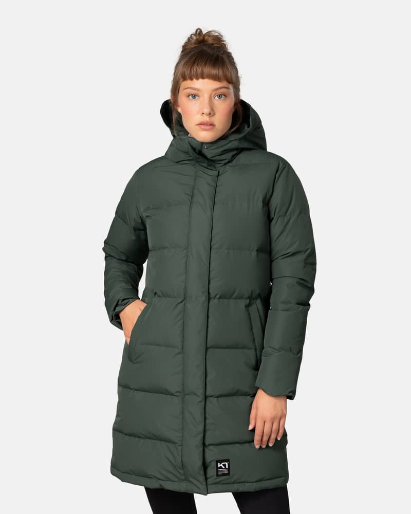 The Kyte Parka is an urban-style down jacket with a long cut and relaxed fit for a practical, everyday wear. Quilted panels hold the down fill in place with style. The fixed hood has a weather brim and velvety soft lining. Deep side pockets double as hand warmers on the coldest of days.
