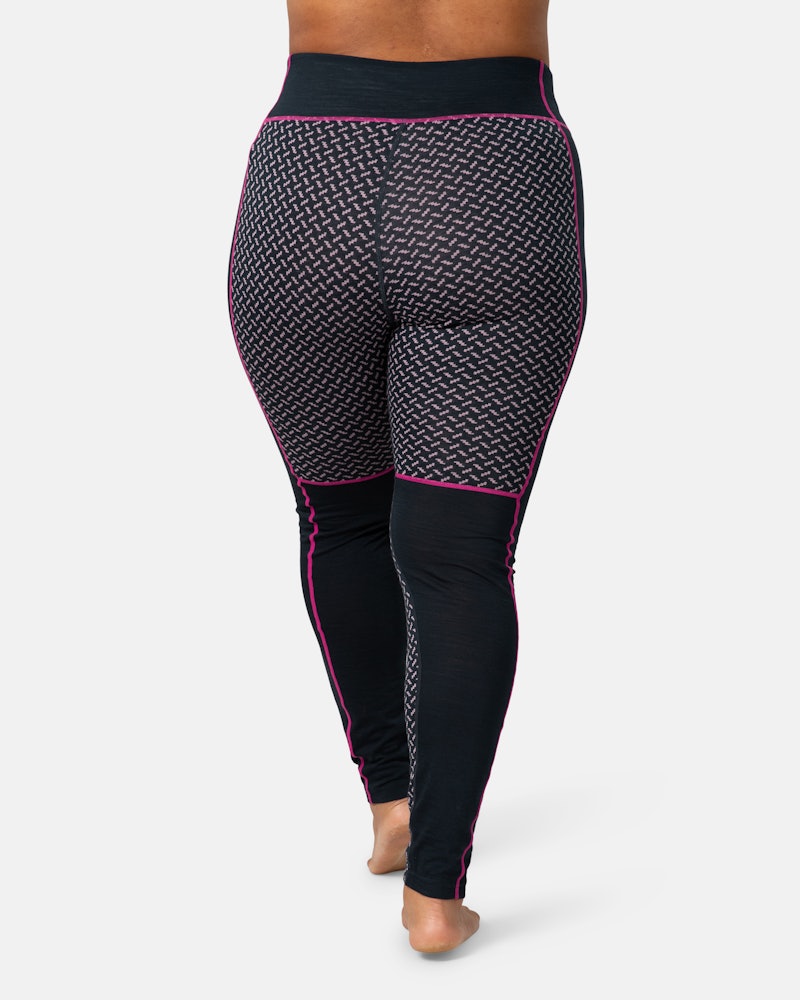 The Lekker Pants area body-mapping, quick-drying, temperature-regulating mixed blend baselayer. Lightweight and with playful patterns, the Lekker activates every adventure. Combining the best of synthetic fibers and natural Merino wool, the performance-oriented Lekker offers extra stretch, flattering lines, and next-to-skin comfort.