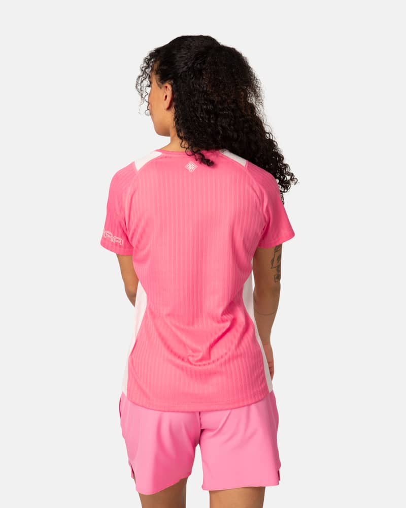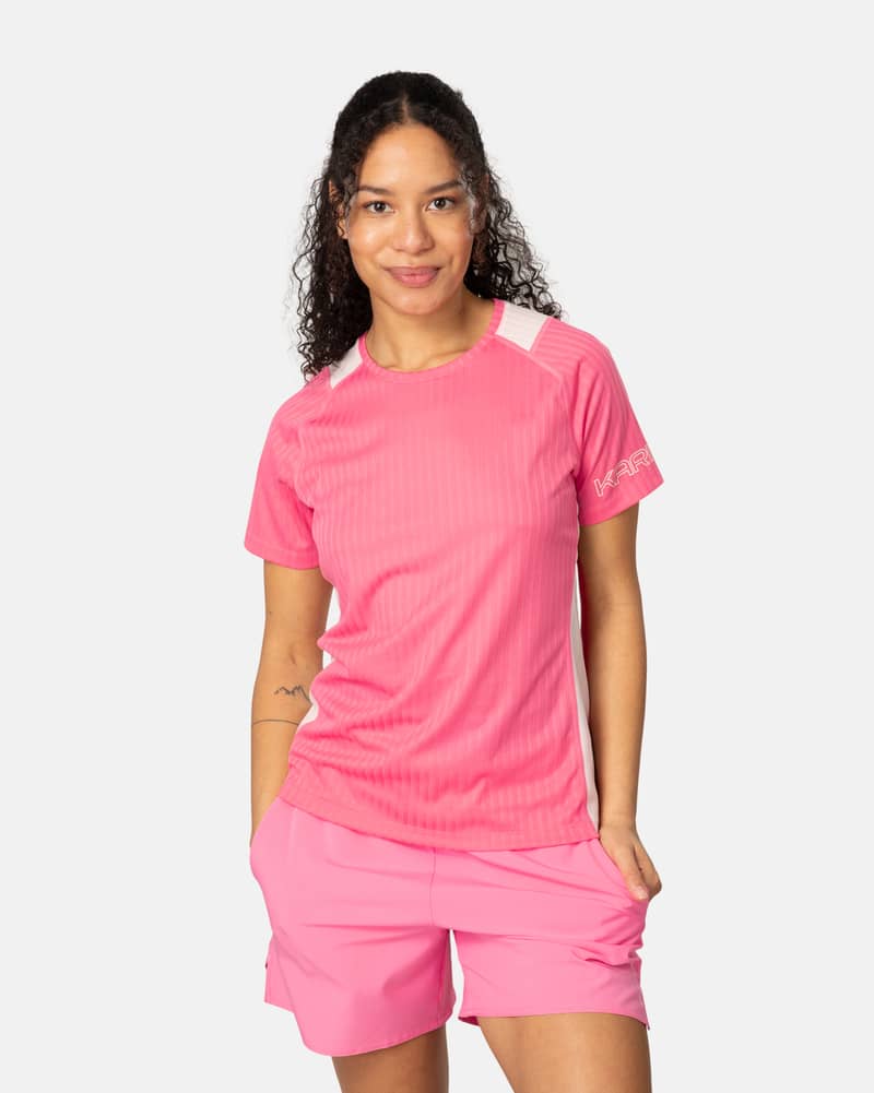 Take on the day with the Leah Tee. Quick-drying ribbed fabric make this the ideal layer for hitting the trails or running around town. Contrasting details add a fun, feminine flair.