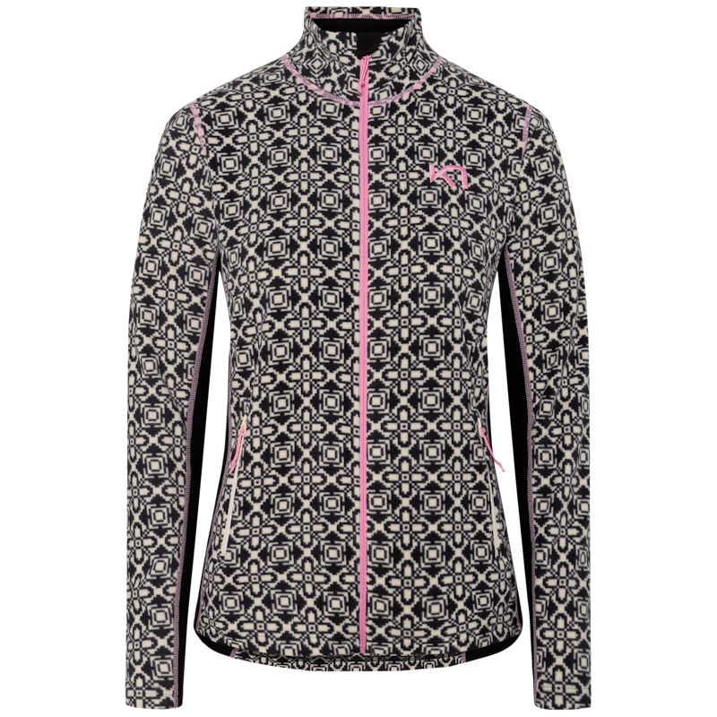 Meet the cozy and chic Thalena Fleece. This fleece features a relaxed silhouette and high collar for extra warmth. Its flatlock seams provide a smooth finish, while the chin guard and secure hand pockets keep you comfortable and protected from the elements. The all-over printed fabric and embroidered logo add playful style to this tough winter essential.