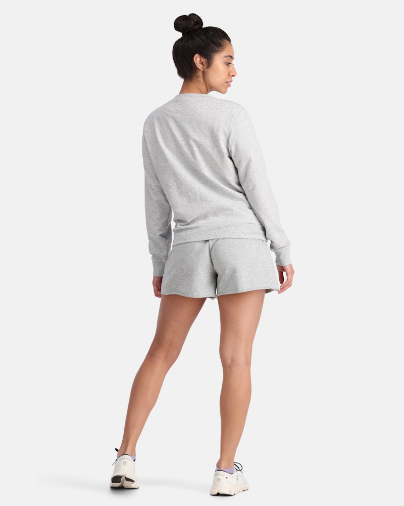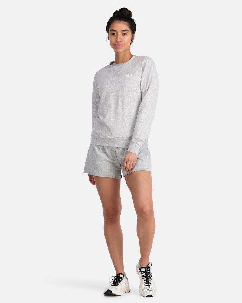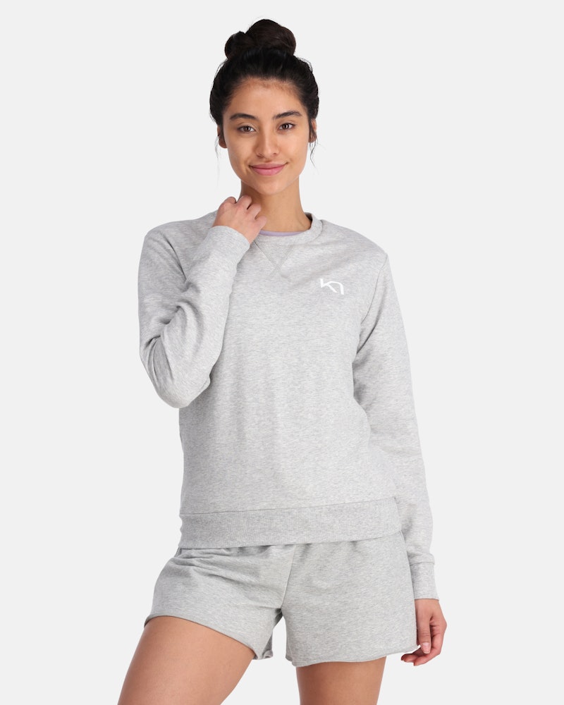 Kari Crew is a casual, cotton blend pullover with a cozy terry lining. Featuring a subtle contrast on the sides, the Kari Crew is a versatile, cozy staple for the active woman whether looking to kick back or move freely.