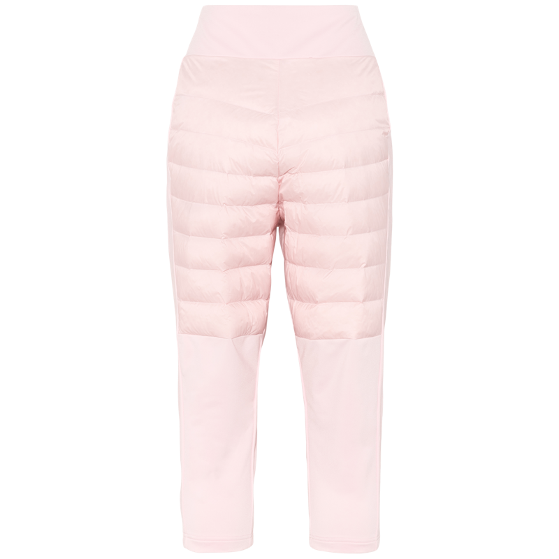 The Emilie High Waist Capri is sure to become a cold-weather staple, thanks to its low-profile, sleek fit, and powerful insulation. Stretch side panels are lined with interior brushed fleece, the wide waist holds an integrated drawstring, and the new quilting pattern secures 450-fill power down. Kiss cold bums and thighs goodbye by layering the Emilie under snow pants, or wear these pants alone on cold, high aerobic days.
