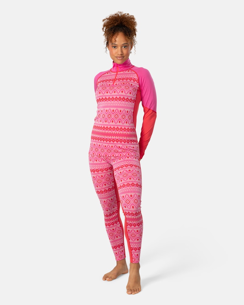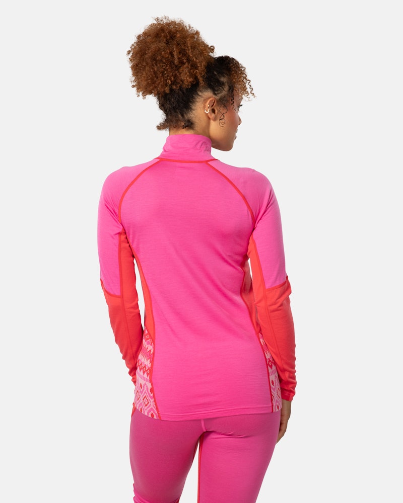The Malia Half Zip is a warm, quick-drying, and ultra-comfortable merino wool/Tencel blend base layer featuring a high collar and strategic moisture wicking.