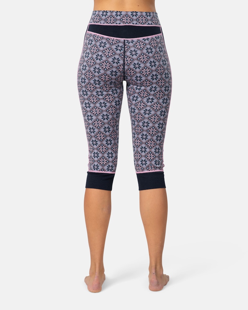 The Rose Capri High Waist is a merino wool base layer that ends below the knee, an ideal match with ski and other boots when you need minimal layers for a smooth, uncluttered fit. Featuring the iconic KT Nordic design, inspired by the traditional Norweigan tapestry hanging in Kari Traa's family cabin, a Jacquard knit elastic waistband, and stretch fabric mapping for improved fit and movement, this slim fit legging is wonderfully warm and buttery soft.