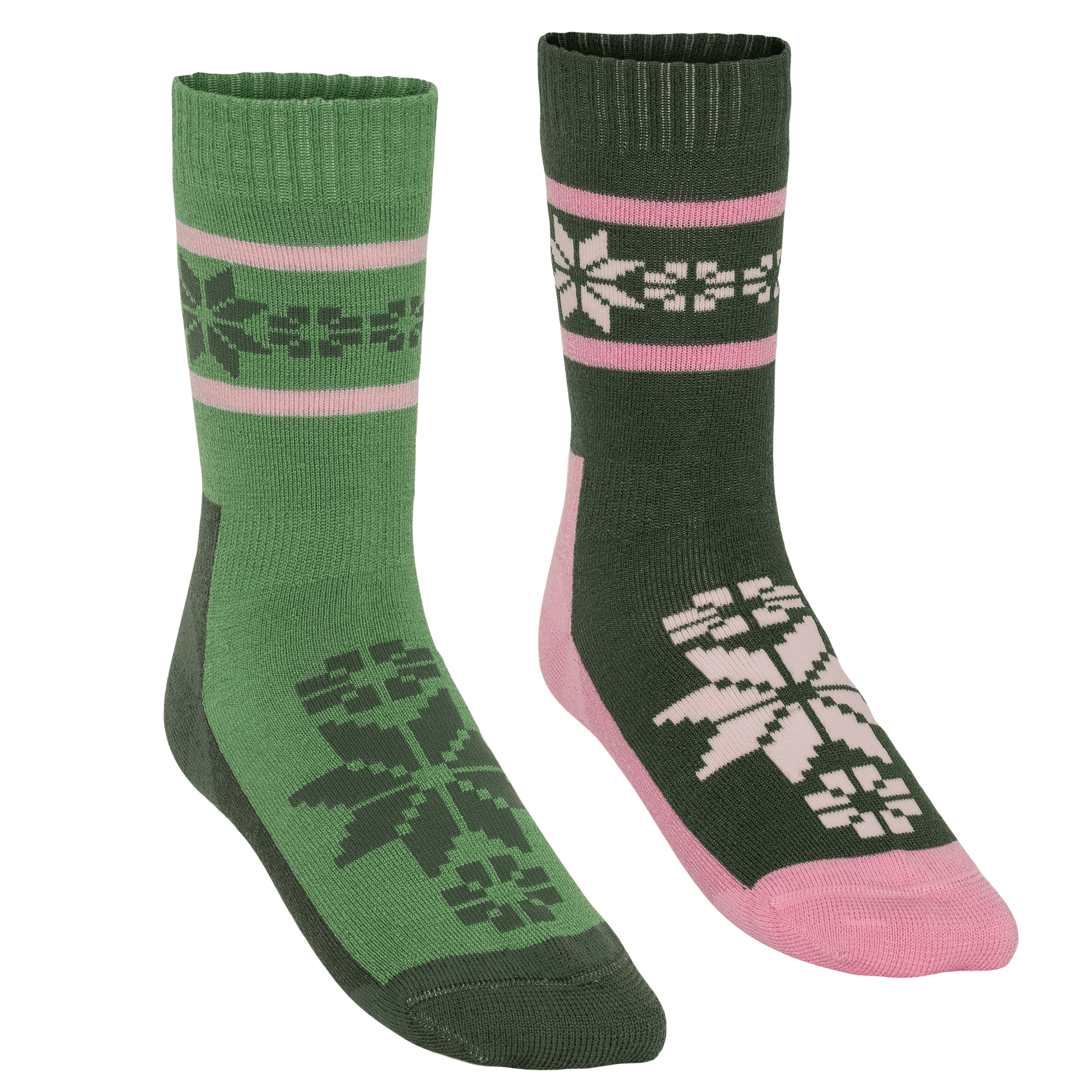 The Rusa Socks 2-pack is a warm, wool-blend, Jacquard-knit, crew athletic sock that comes in two contrast-color Nordic-inspired designs. Featuring arch support and a reinforced heel and toe for comfort and durability, the socks are terry-lined and have a flat toe seam to prevent chafing . Comes in a 2-pair pack.