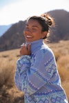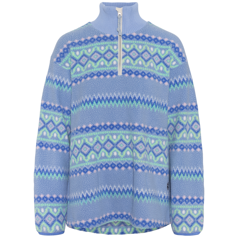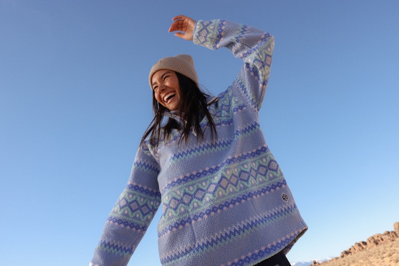 You won’t want to take off the Ruthie Midlayer Half Zip, thanks to its relaxed, loose fit and super soft feel. Made with recycled polyester, this pullover pile-fleece covers your booty, has deep side pockets, and keeps you looking stylish in a modern northern Norway-inspired pattern.